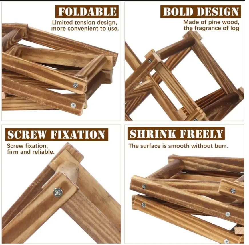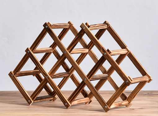 Luvino Wooden Wine Rack – Foldable & Stackable Wine Storage Organizer for Countertop, Cabinets & Bar – Rustic Wood Bottle Holder (Holds 6 Bottles)